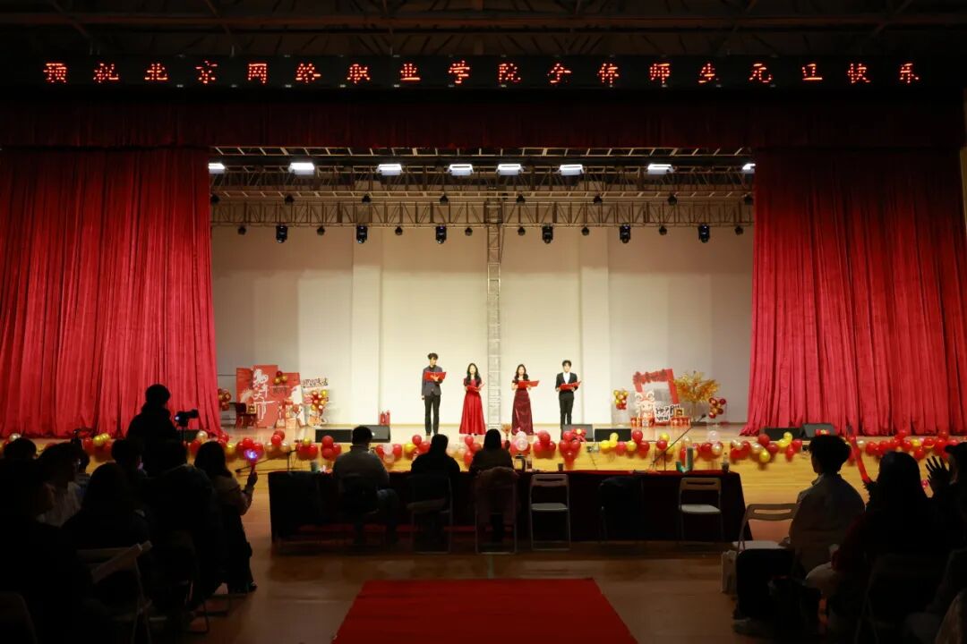 岁末将至,新年将临。为丰富校园文化生活,营造温馨祥和的节日氛围,展现全体师生昂扬向上的精神风貌,凝聚青春奋进力量,北京网络职业学院于12月25日晚成功举办元旦文艺晚会。整场晚会精彩纷呈、暖意融融,师生齐聚一堂,用歌声告别旧岁,以欢笑迎接新年,共同见证这场属于北网人的美好时刻。