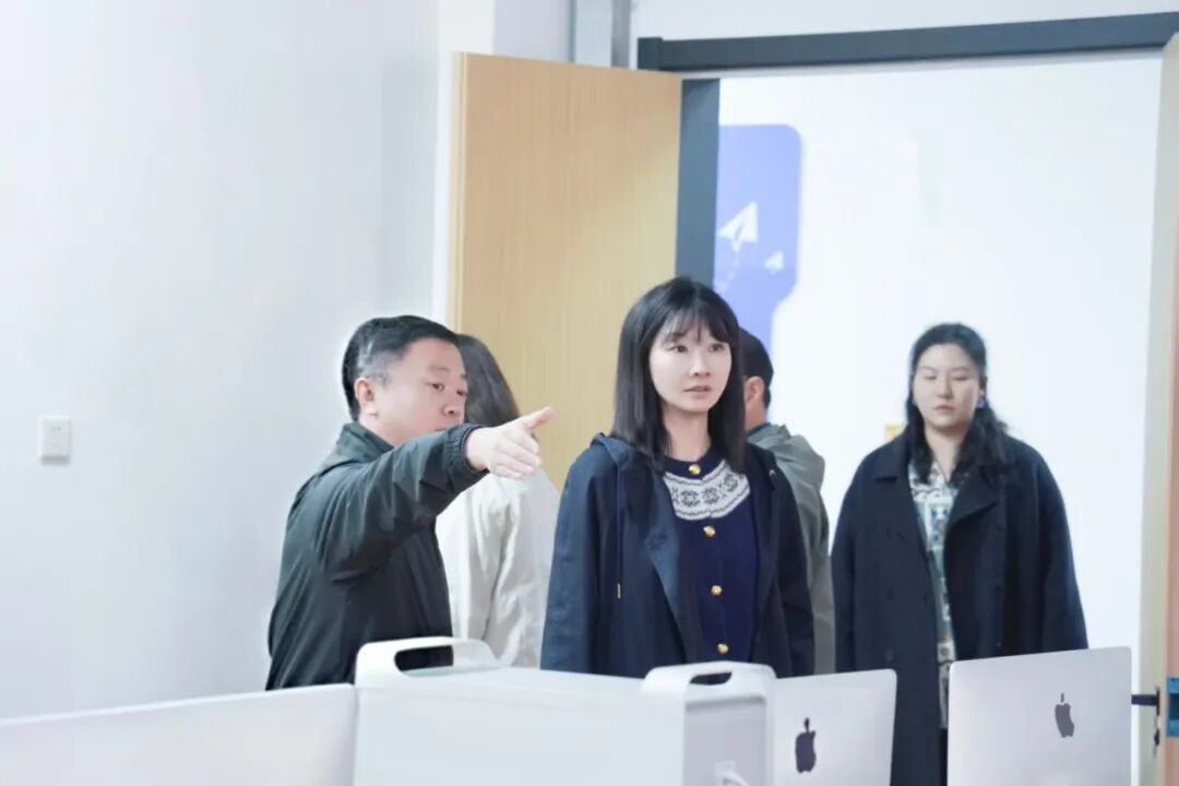 调研组一行首先走进学院融媒体中心,实地了解中心教学运行与实践育人情况。该中心整合影视节目制作的拍摄、导播、剪辑全链条实训功能,兼顾电商直播运营、新媒体创意实训等功能空间,通过剧组化课堂、虚拟拍摄技术课堂等多种教学形式,将实战项目融入日常教学,着力提升学生的专业技能与实践能力。调研组对中心沉浸式、实战化的育人模式给予积极评价。